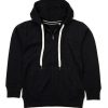 Set-in shoulders | Kangaroo pockets | Brass effect zipper and rivets | Wide natural coloured drawcords with brass tipping | Three piece hood for perfect hood shape | Decorative flatlock stitch at shaped side seams and pocket | Double taping at neck for neat finish and contemporary look | Tear-off size label at back neck; perfect for re-branding at neck with private label or print | Peach finished and inside brushed heavy fleece for super soft feel