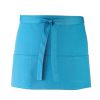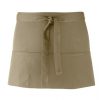 3 open pockets | Short style bar apron | 90 cm self fabric ties | Industrial laundry: 85°C | Domestic wash: 60°C | Twill | WRAP certified